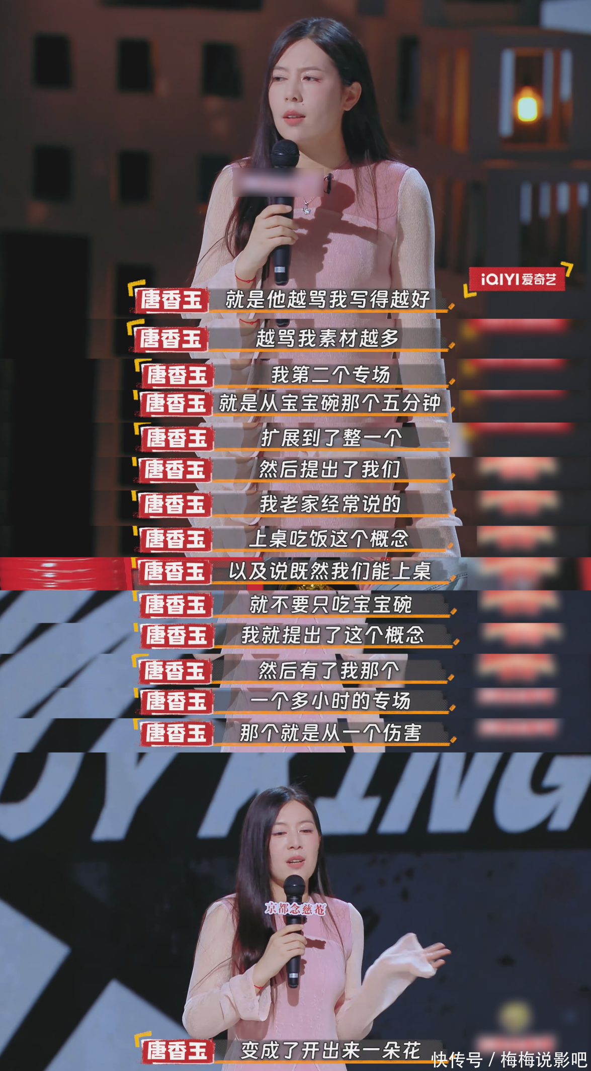 杨笠随后在扮演中力挺唐香玉。“我合计每一个东说念主来抒发格式的时候,前提是她起头受到了伤害……你知说念每一个东说念主的创作,都是由于她的生涯申饬组成的,当你要规避你生涯申饬的时候,你是莫得意见创作的。”这是适当脱口秀的创作限定的,素材来源于生涯申饬,是扮演者内心世界和阅历的一种反应,无须为了相投他东说念主而殉国个东说念主的声息。