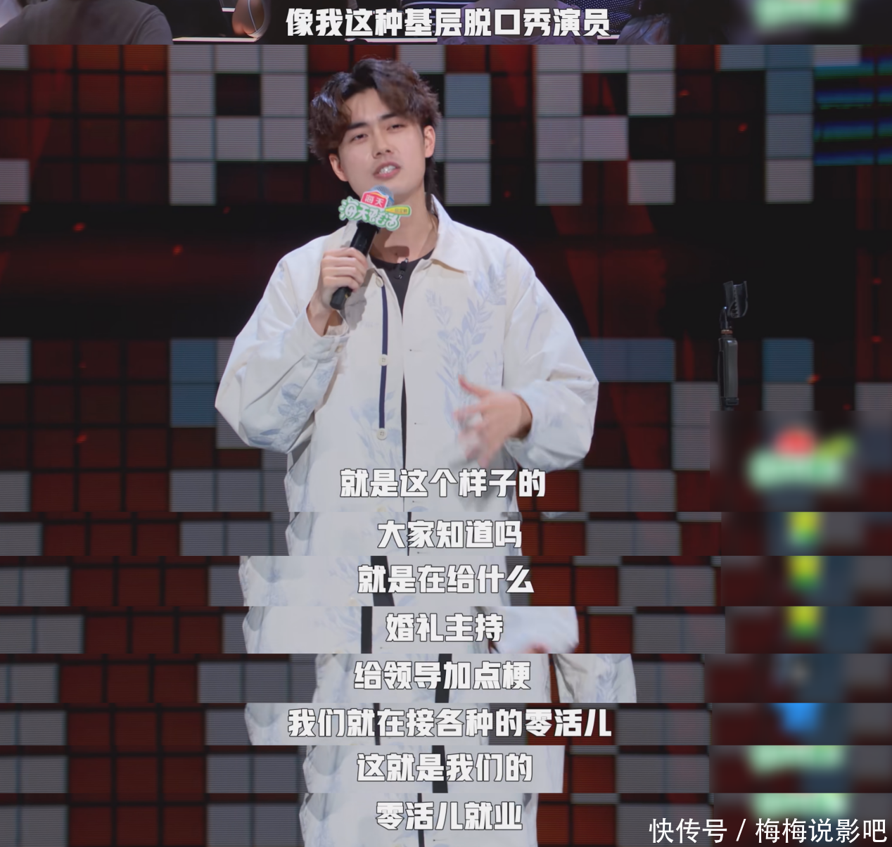 比如阅历了行业风云后,许多脱口秀演员从也曾的舞台骄子变成悠闲者,身份的骤变成为他们蹙迫的素材来源。他们在段子中捉弄悠闲景色,呈文求职的粗重和生涯的疲钝。